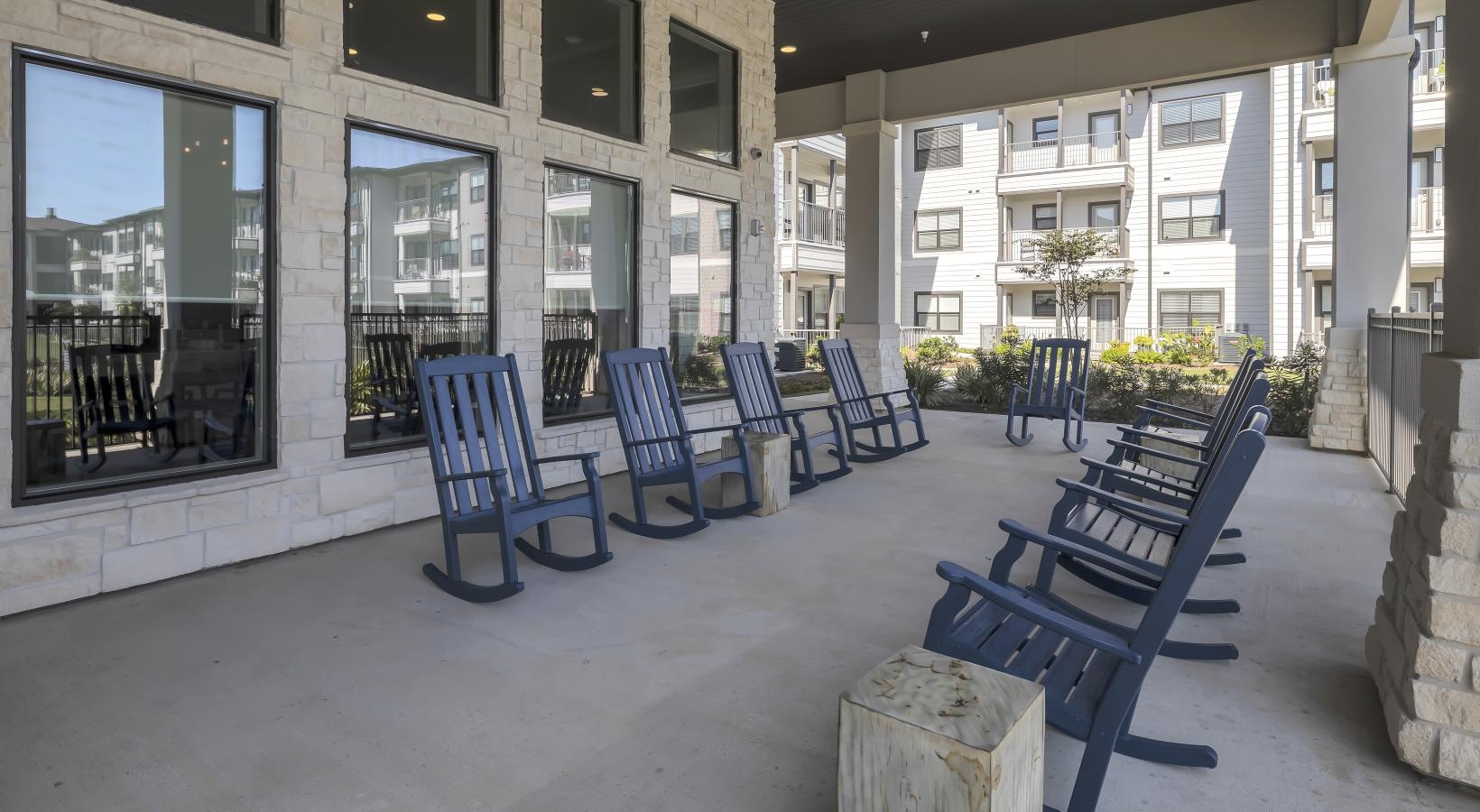 • a porch with rocking chairs out front