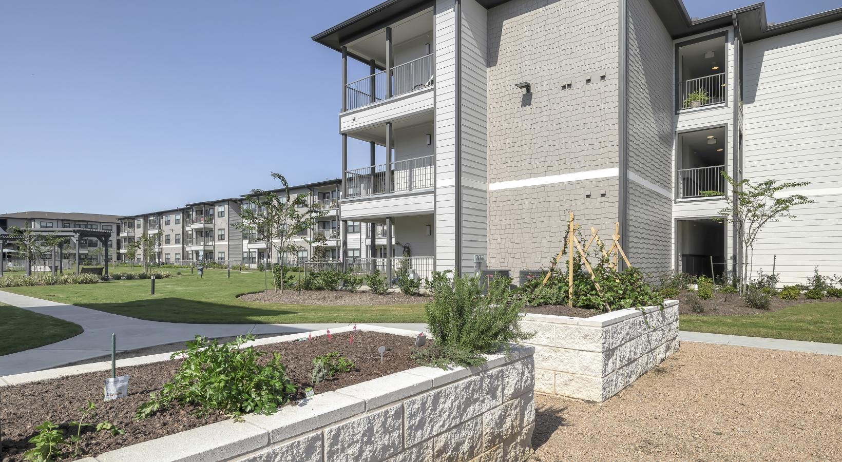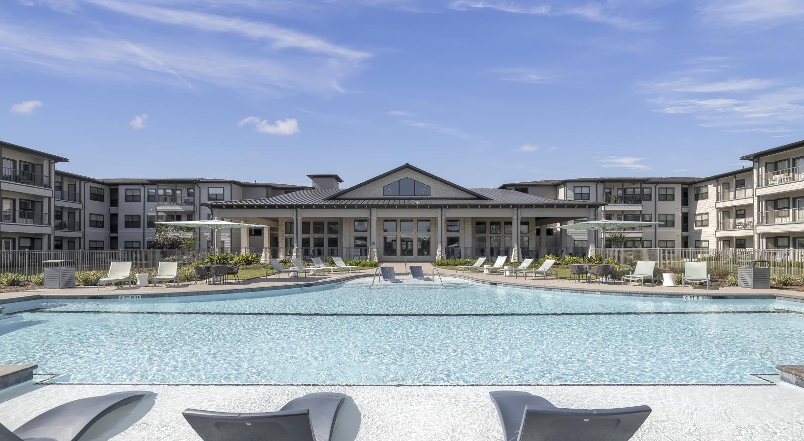 • a swimming pool in front of a building