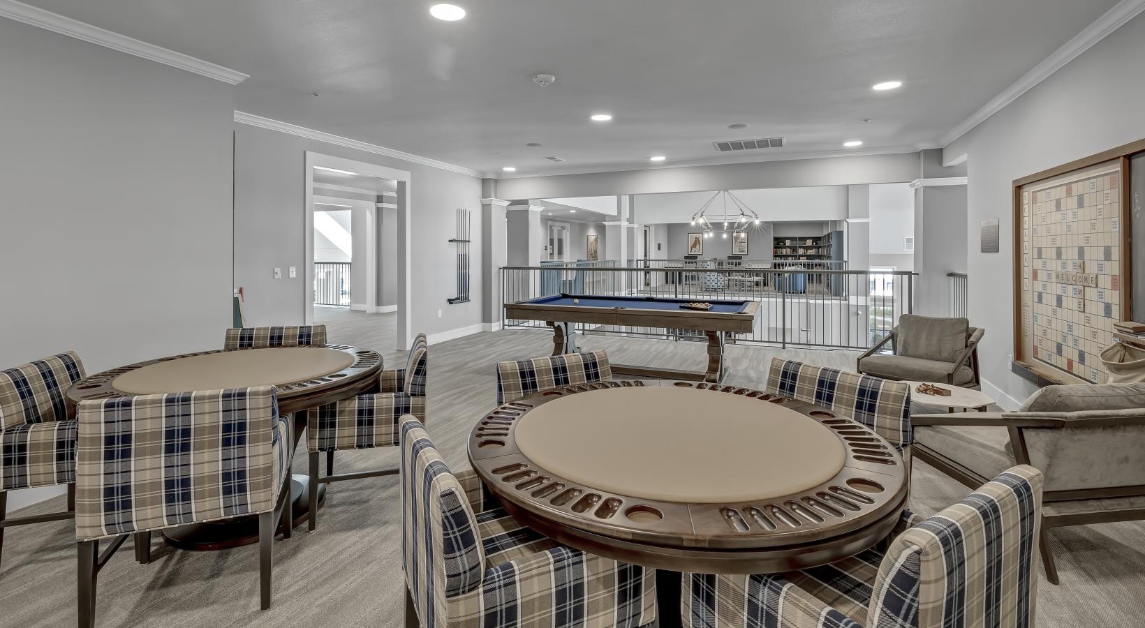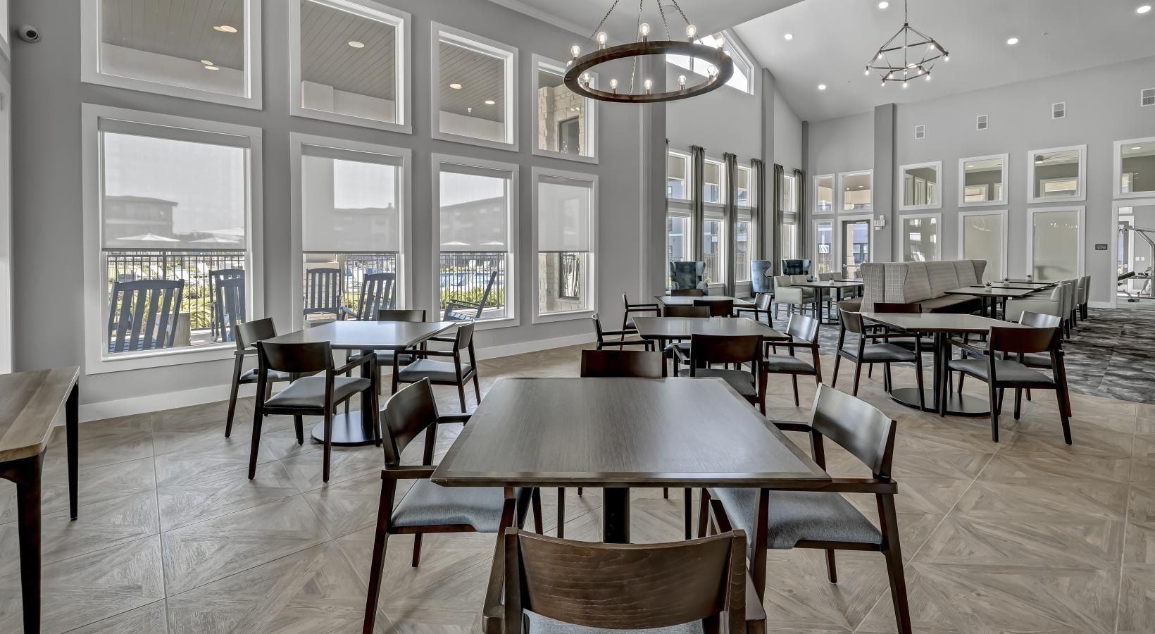 • a room with tables and chairs